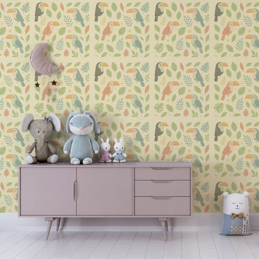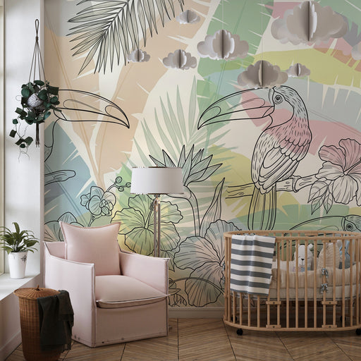 KidsWallFörvandla ditt barns rum med denna barnrum tapet med vackra tukaner som ger en tropisk touch. Dessa färgglada fåglar sitter försiktigt på en pastel...