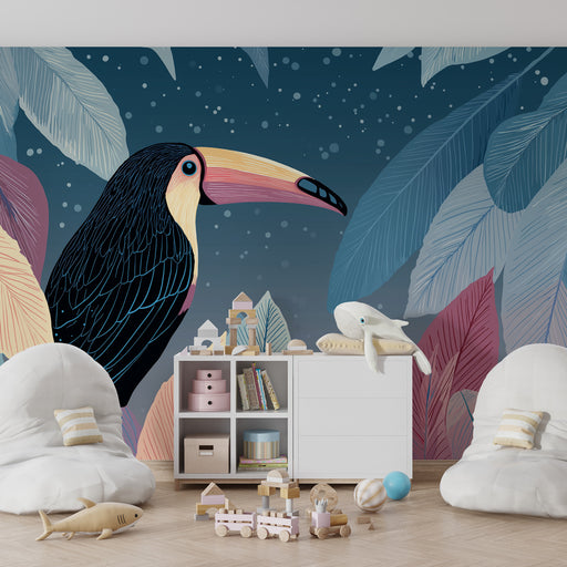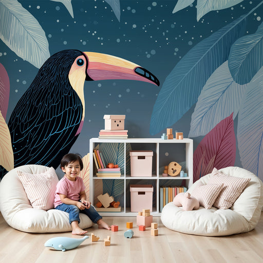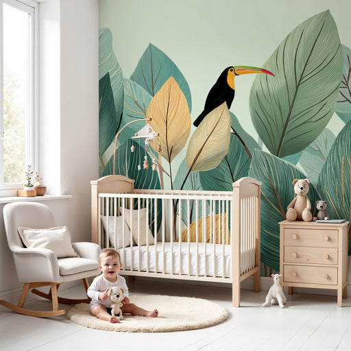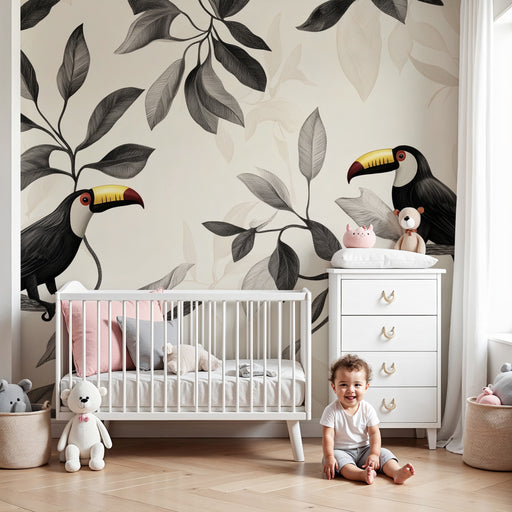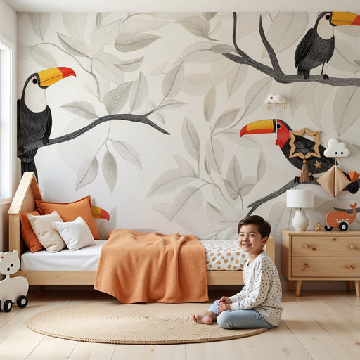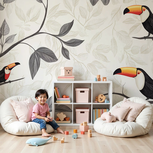 Våra lekfulla tukanmotiv, som sitter bland frodig lövverk och exotiska blommor, förvandlar varje rum till ett dagligt äventyr. De klara och glada färgerna stimulerar ditt barns kreativitet samtidigt som de skapar en varm och välkomnande atmosfär.