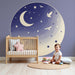 Omforma ditt barns rum till en bedårande nattlig plats med denna barnrums tapet inspirerad av himlens magi. I en lugn cirkel vaktar en mild måne över en himmel full av glittrande stjärnor, medan glada ugglor flyger graciöst genom natten. Denna förtrollande dekoration inbjuder till drömmar och frid.