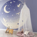 Med denna barnrums tapet ger du ditt barn en miljö som främjar söta drömmar och lugn. Kombinera den med ljusa trä möbler och naturliga tygaccessoarer för en varm och inbjudande atmosfär. Skapa en kokong där varje natt blir ett äventyr under stjärnorna.