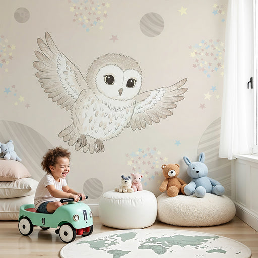 KidsWallLägg till en touch av magi i ditt barns rum med denna barnrumstapet. En bedårande uggla med sina stora runda ögon och mjuka fjädrar välkomnar glatt...