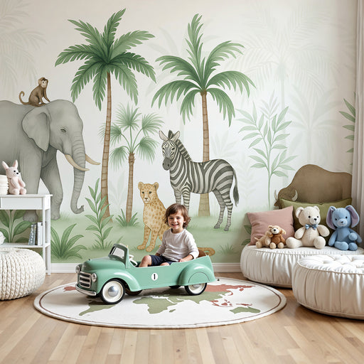 KidsWallGe din barn en värld av oskuld och upptäckt med denna barntapet som visar upp söta djur i en lugnande naturlig miljö. En vänlig elefant, en nyfiken...
