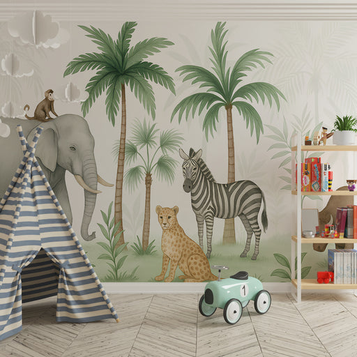 KidsWallTransformera ditt barns rum till ett vilt och lugnande äventyr med denna barn tapet prydd med bedårande djur från savannen. En glad elefant leker m...