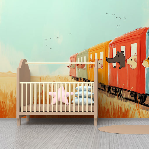 KidsWallGå ombord på ett förtrollande äventyr i ditt barns rum med denna illustrerade tapet. Föreställ dig en bedårande björn med en hatt, som kör en färgg...