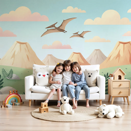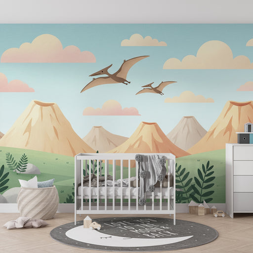 KidsWallLåt ditt barns fantasi flyga med denna barn tapet med vackra pterodactyler som flyger över en pastellfärgad himmel. Dessa fascinerande varelser fra...
