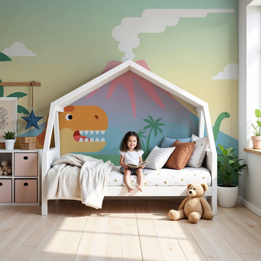 KidsWallOmvandla ditt barns rum till en fascinerande förhistorisk värld med denna barn tapet som visar upp en vänlig dinosaurie och en majestätisk vulkan. ...
