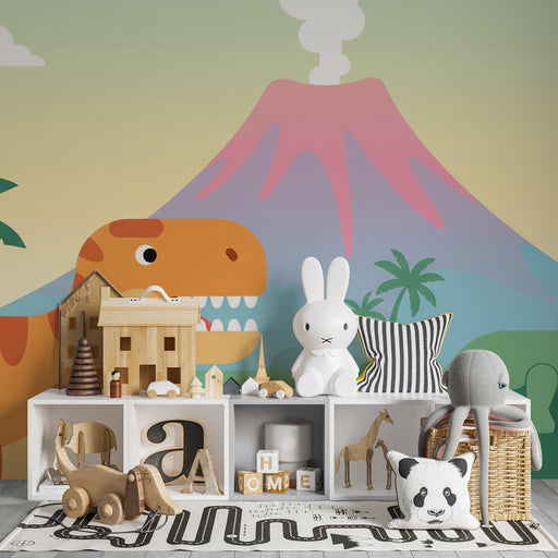 KidsWallOmvandla ditt barns rum till en riktig jurassic park med denna barn tapet med en glad dinosaurie framför en färgglad vulkan. Denna lekfulla dekor i...