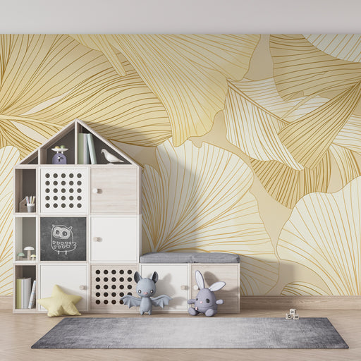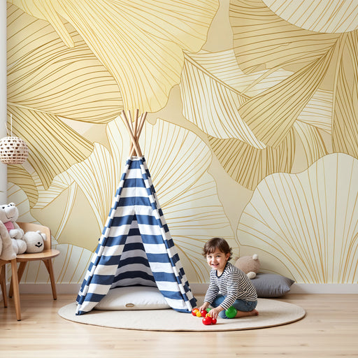 Visa alla detaljerBarntapet | Delikata blad i guld och kräm