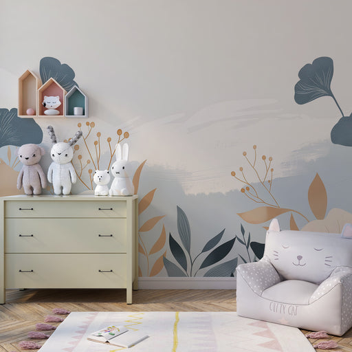 Visa alla detaljerBarntapet | Mjuka blommor och pastell lövverk