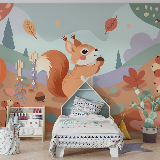 KidsWallFör in en känsla av natur och mjukhet i ditt barns rum med denna barn tapet med bedårande skogs djur. En busig ekorre klättrar på en gren med höst ...