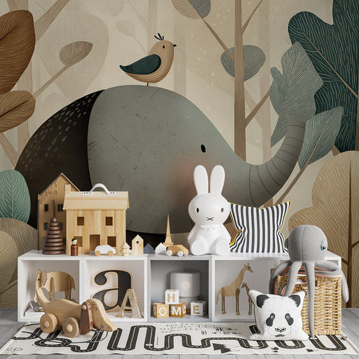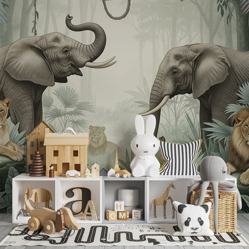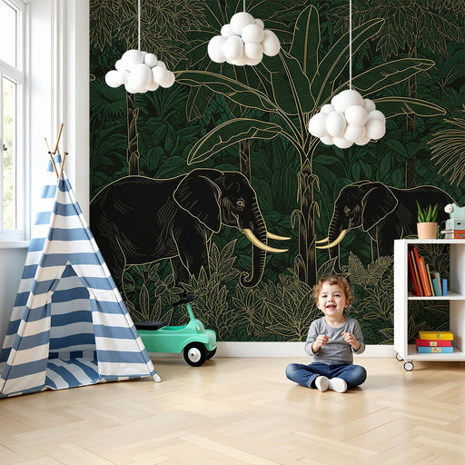 KidsWallDyk ner ditt barn i en förtrollande värld med denna barn tapet som illustrerar en majestätisk elefant som dyker upp från en magisk skog. Kontrasten...