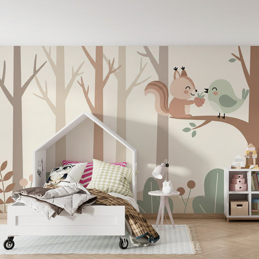 Visa alla detaljerBarntapet | Ekorre och fågel i skogen