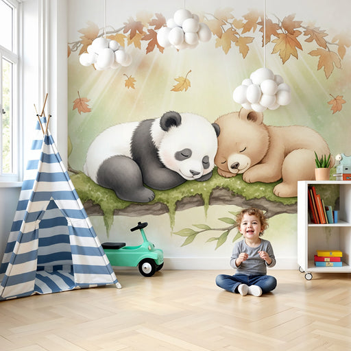 KidsWallTa med ditt barn till en magisk värld med denna barn tapet som visar en bedårande liten björn. Lugnt sittande bland gyllene och gröna blad, charmar...