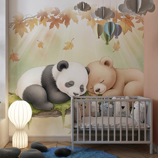 KidsWallTillsätt en touch av sötma och färg till ditt barns rum med denna konstnärliga tapet som visar en lugn björn. Livfulla löv i bruna, orange och blå ...