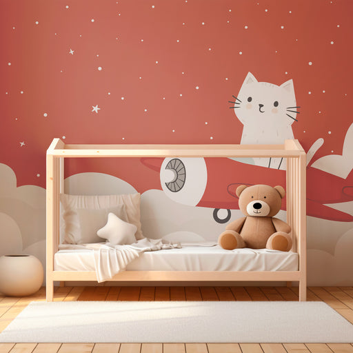 KidsWallGe dig ut på ett magiskt äventyr med denna barn tapet med en bedårande kattunge på ett litet rött flygplan som flyger över molnen. I en mjukfärgad ...