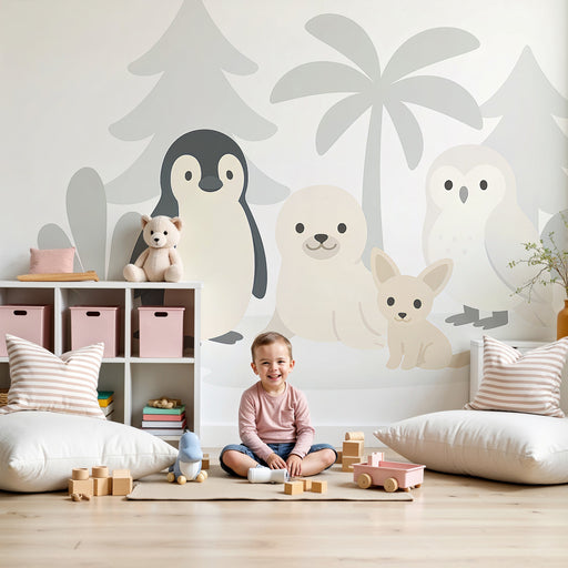 KidsWallOmvandla ditt barns rum till en verklig djurfristad med denna barn tapet som illustrerar en grupp söta djur mitt i naturen. En pingvin, en säl, en ...