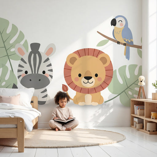 KidsWallOmvandla ditt barns rum till en riktig vildmarkssanctuary med denna barn tapet med charmiga djungeldjur. En leende lejon, en busig zebra och en ung...