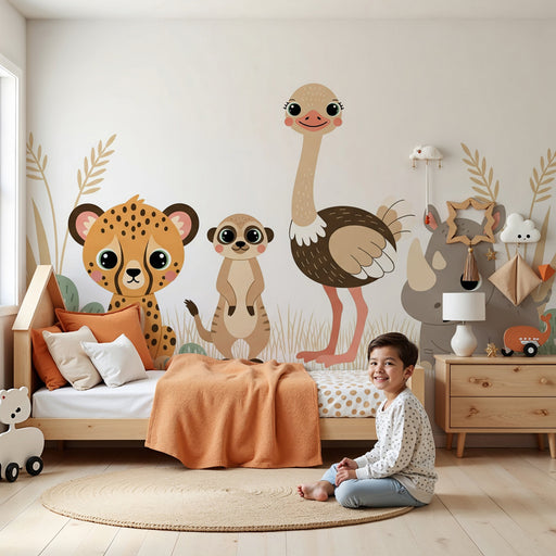 KidsWallOmvandla ditt barns rum till en riktig safari med denna barn tapet med söta djur från savannen. Denna färgglada design visar en busig leopard, en n...