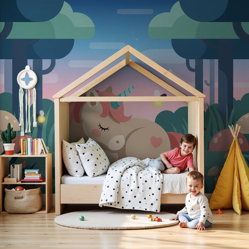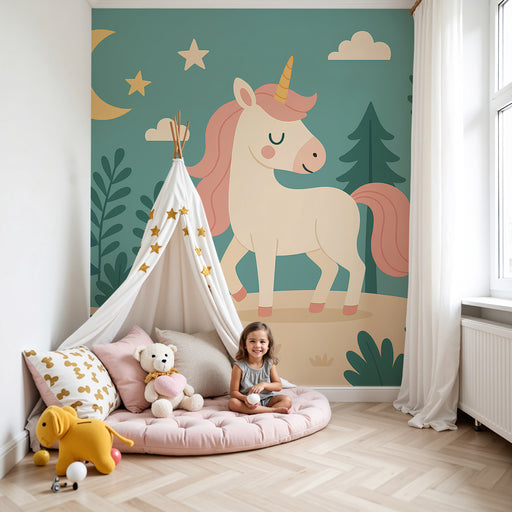 KidsWallStäng ögonen och föreställ dig en förtrollad värld där majestätiska enhörningar galopperar under en stjärnklar himmel, i hjärtat av en magisk skog....