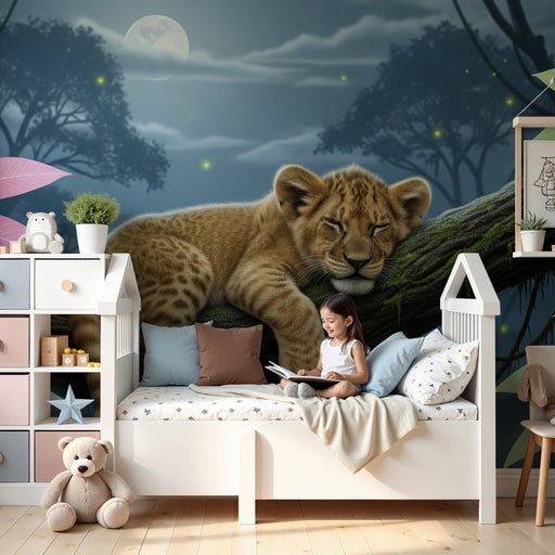 KidsWallSkapa en fristad av frid i ditt barns rum med denna barn tapet som visar en bedårande lejonunge som sover fridfullt mitt i en pastoral landskapsmil...