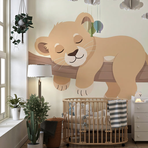 KidsWallSkapa en lugnande och förtrollande miljö i ditt barns rum med denna barn tapet som visar en bedårande lejonunge som sover fridfullt på en gren. Und...