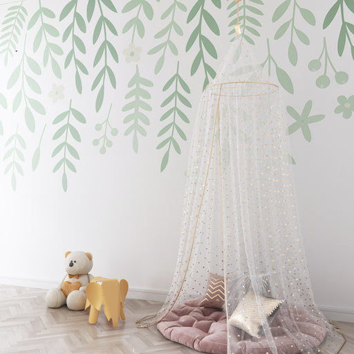 KidsWallTransformera ditt barns rum till en verklig fristad med denna barn tapet med hängande löv mönster. Denna lätta och luftiga design, med mjuka gröna ...