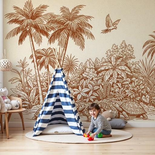Visa alla detaljerBarntapet | Sköldpaddor och papegojor i en tropisk paradis