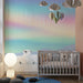 Denna förtrollande dekor skapar en mild och lugnande atmosfär, perfekt för sömn och drömmar. De mjuka nyanserna av blått, rosa och grönt ger en touch av magi till rummet samtidigt som de stimulerar din lilla barns fantasi.