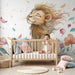 Lägg till en touch av magi i ditt barns rum med denna barn tapet, som visar en glad lejon omgiven av delikata blommor. Denna lejon, med sitt lugna leende och dansande man, förmedlar glädje och oskuld och skapar en lugnande och tröstande atmosfär.