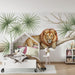 De grönskande palmer, målade med mjuka nyanser, ger en lugnande atmosfär till rummet. Varje detalj av denna mural, från lejonets flammande man till trädet's realistiska textur, är noggrant utförd för att förvandla utrymmet till ett verkligt vilt rike. Denna dekoration uppmuntrar till daglig utforskning och äventyr.