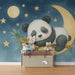 Pandan, med rosiga kinder och fridfulla ögon, verkar fridfullt sjunka ner i en söt sömn. De gyllene stjärnorna glittrar omkring honom och ger en magisk touch till denna lugnande dekor. De blåa och gröna nyanserna i denna barnrumstapet skapar en fridfull atmosfär som är perfekt för att främja din lilla älsklings sömn.