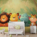 Omvandla ditt barns rum till en verklig fristad med denna barn tapet som visar upp bedårande djur från djungeln. Fem djurvänner, inklusive en glad lejon, en söt elefant och en busig tiger, sitter fridfullt mitt i en frodig vegetation och skapar en varm och välkomnande atmosfär.