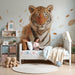 Varje detalj av tigern, från dess ikoniska ränder till dess milda uttryck, är noggrant återgiven och ger en touch av realism till denna väggmålning för barn. Den rena bakgrunden gör att djuret framträder vackert, lockar uppmärksamhet och väcker nyfikenhet hos unga äventyrare.
